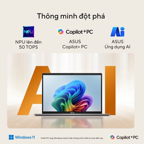 Máy trang bị bộ xử lý AMD Ryzen AI 5 mạnh mẽ với hiệu suất NPU 50 TOPS , tối ưu hóa các tác vụ AI phức tạp, từ chỉnh sửa hình ảnh đến sử dụng các công cụ thông minh của Copilot AI trên Windows 11, đồng thời giảm tải hệ thống giúp tiết kiệm điện năng hiệu quả. Sức mạnh AI này được bổ trợ bởi 16GB RAM DDR5 cho khả năng xử lý đa nhiệm mượt mà, ổn định và ổ cứng SSD 512GB PCIe 4.0 siêu tốc, đảm bảo khởi động hệ thống và truy xuất dữ liệu chỉ trong vài giây, vượt trội so với chuẩn PCIe 3.0 truyền thống.