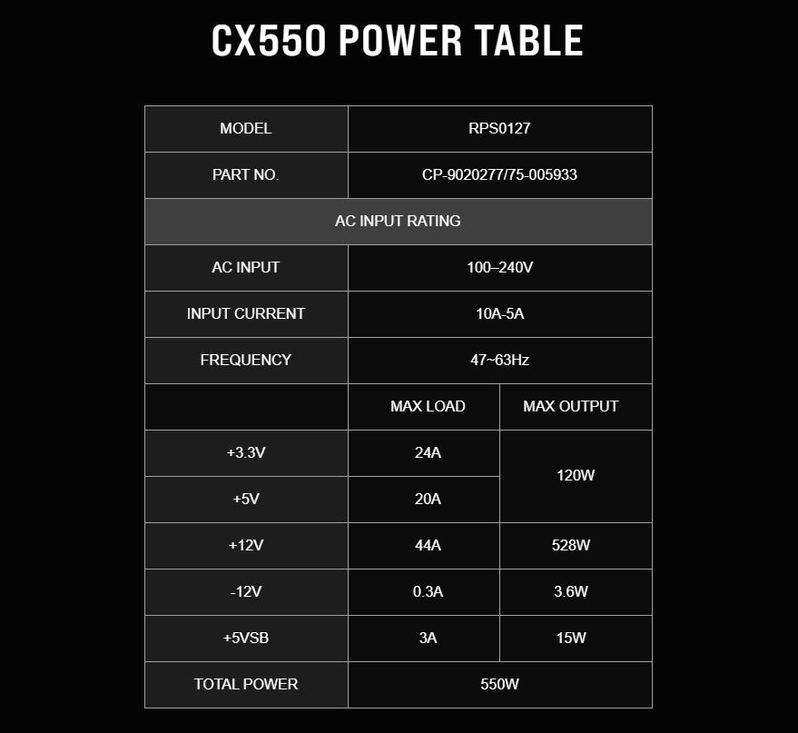 Nguồn máy tính Corsair CX550 550W